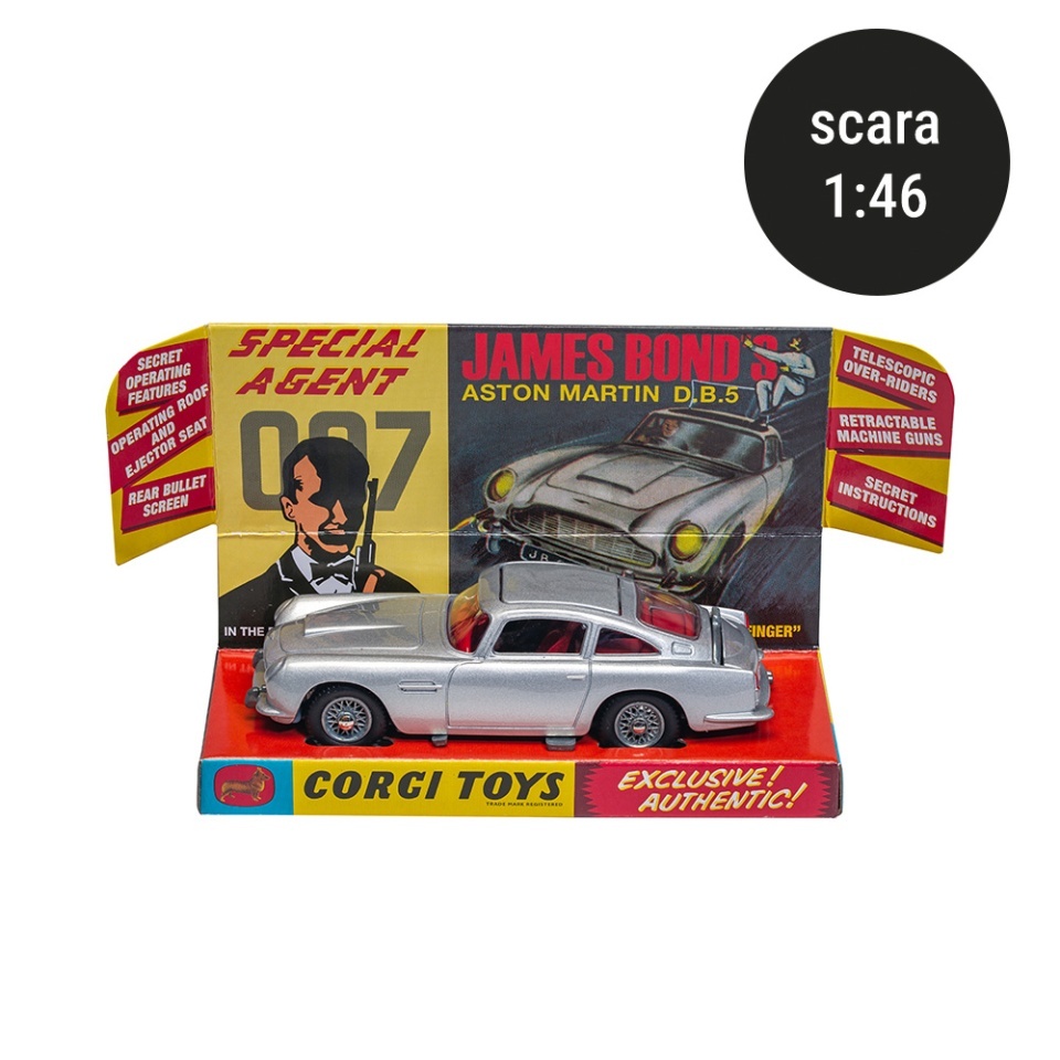 Aston Martin DB5, cel mai emblematic vehicul al celebrului spion, este un simbol al rafinamentului, ingeniozității și puterii. Cu finisajul său argintiu distinctiv, acest model a captivat audiențele în filme legendare precum "Goldfinger", "Thunderball" și "Skyfall"
